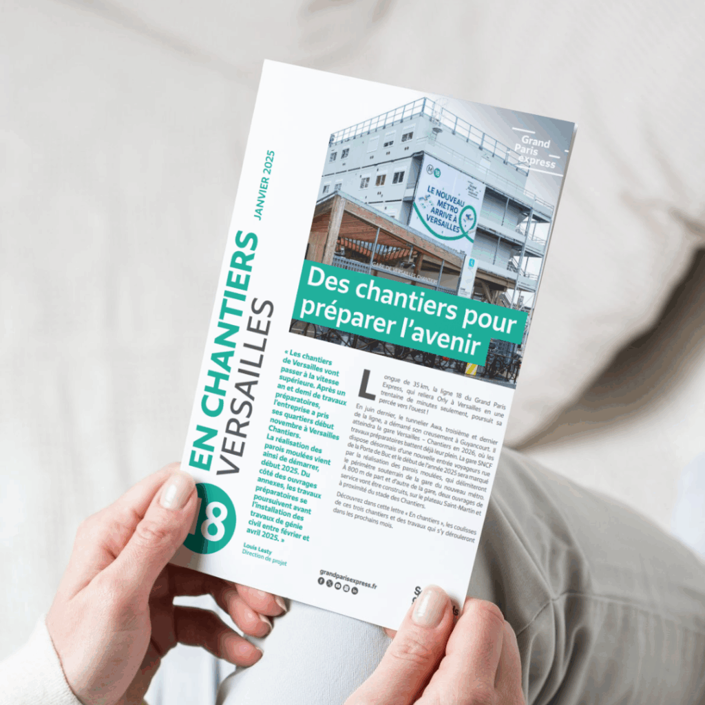 Rédaction de la lettre "En Chantiers" pour l'agence Stratéact et la Société des Grands Projets. L'édition était consacrée à la Ligne 18 du Grand Paris Express et en particulier, aux travaux en gare de Versailles Chantiers. L'objectif : faciliter la compréhension et l'acceptabilité du chantier par les riverains.